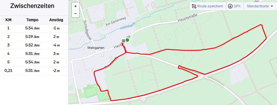 Distanz 5,24 km – Tempo 6:17 min/km – Zeit 32min 56s